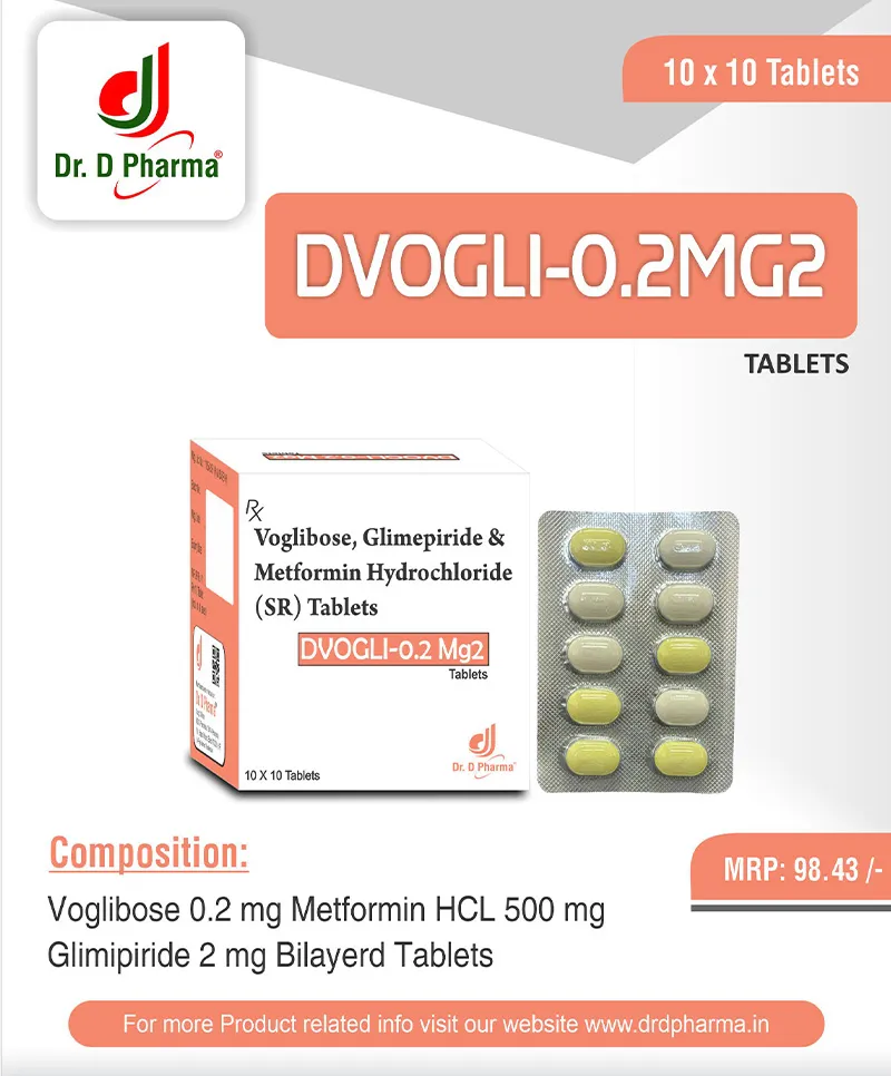 VOGLIBOSE 0.2MG + METFORMIN HCL 500MG + GLIMIPRIDE 2MG BILAYERD (BLISTER)